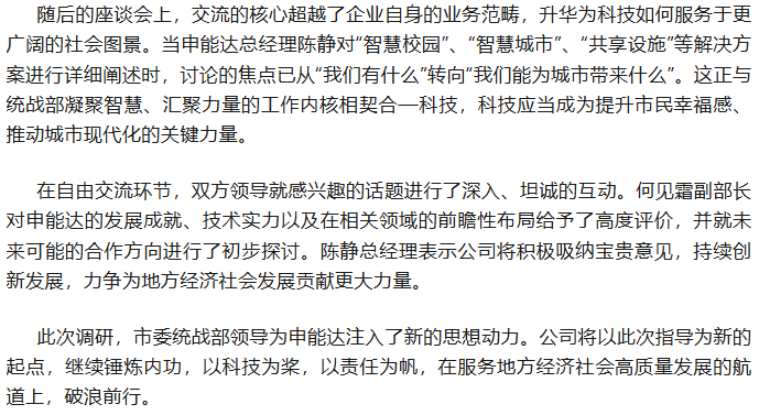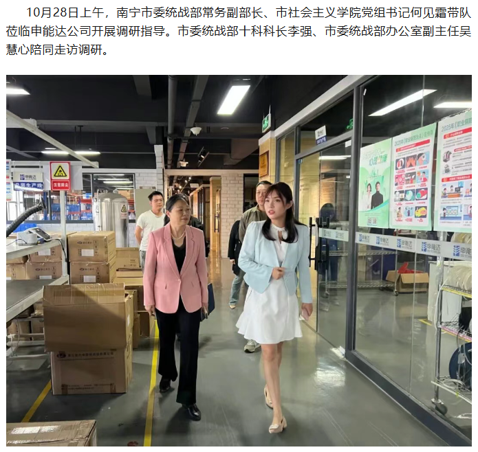 南宁市委统战部副部长何见霜莅临申能达调研指导